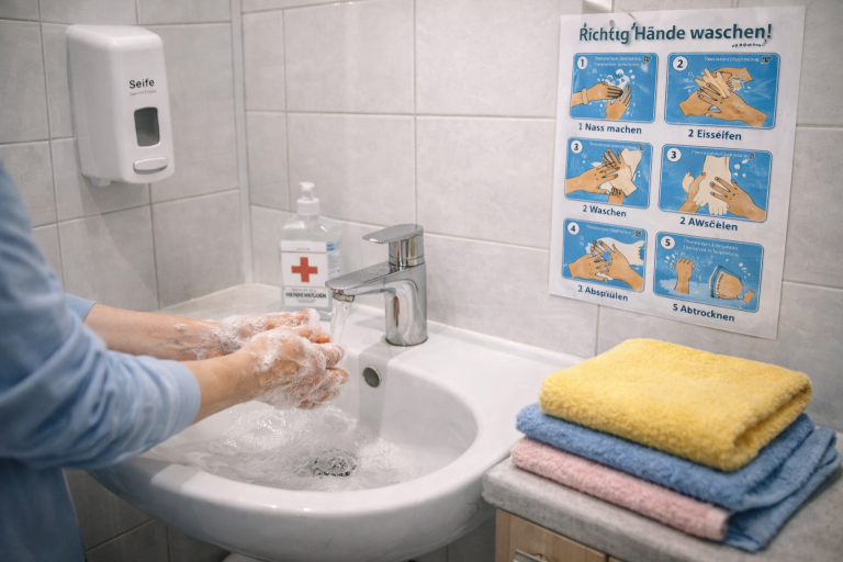 Bewertung der übergreifenden Hygienestandards, Reinigungsorganisation und grundlegender hygienischer Abläufe im Kita-Alltag.