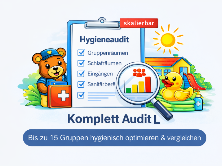 Viele Einrichtungen nutzen die Pakete auch zur Vorbereitung oder internen Abbildung einer Hygienebegehung im Kindergarten – inklusive klarer Prioritäten und Maßnahmenplan. So entsteht aus den Antworten eine belastbare Hygiene-Dokumentation ohne Vor-Ort-Termin.